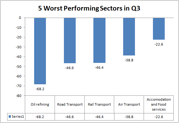 The transportation and storage sector was one of the worst performers in the third quarter of 2020 compared to other sectors with almost all six activities under this industry recording negative growth rates in Q3 2020 expect the Post and Courier Services.