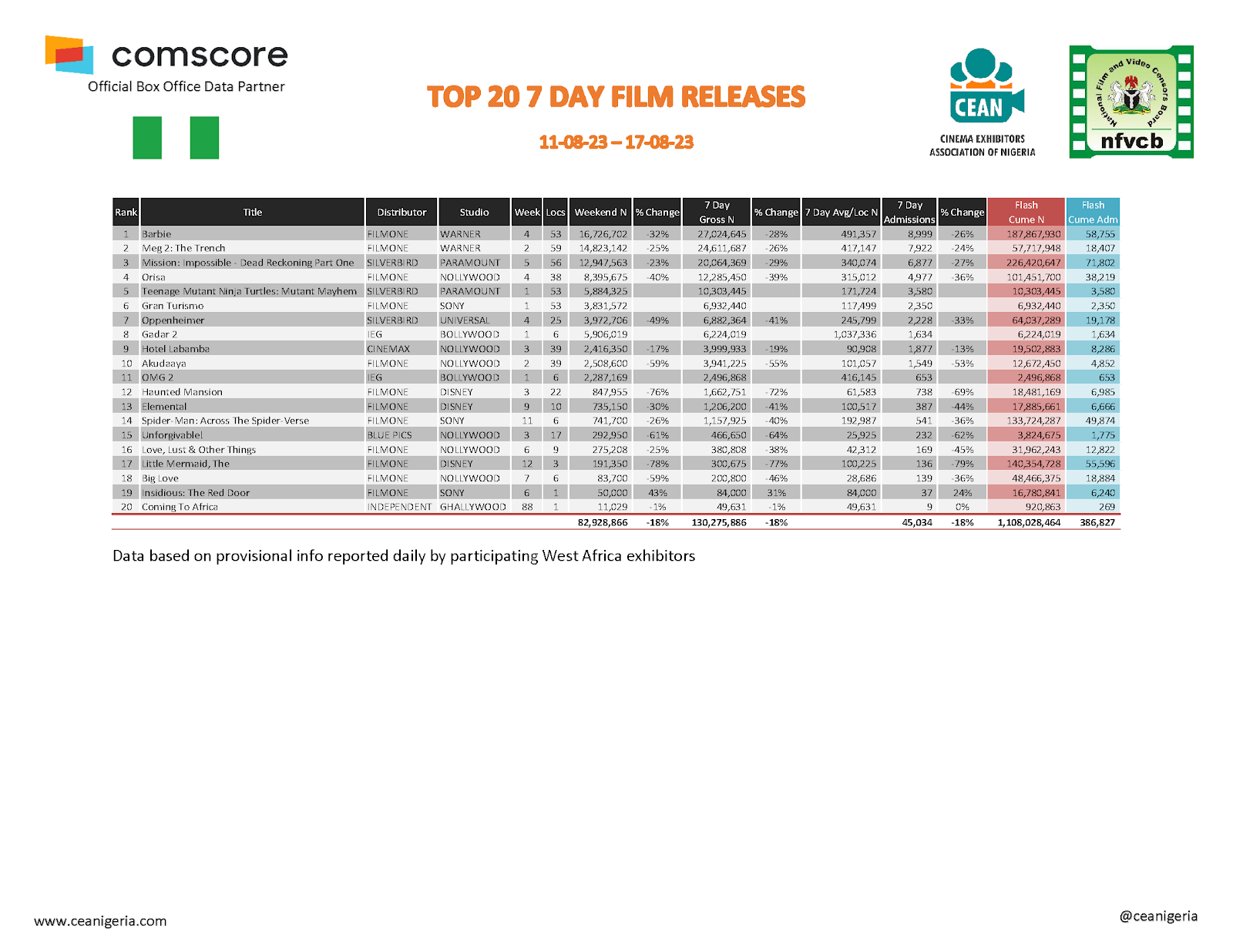 According to the Cinema Exhibition Association of Nigeria, below are the highest-grossing Nollywood movies in 2023.