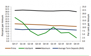 Prime lending rate for instance, declined by 2.67 percentage point to 14.99 percent in the fourth quarter of 2019 compared with 17.60 percent in the fourth quarter of 2017.