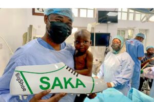 “Your support of the BigShoe Charity in collaboration with PSC Specialist Hospital helped us to perform much-needed operation and this act has given the children a brand-new life,” Dr. Ibrahim said in a letter sent to Saka