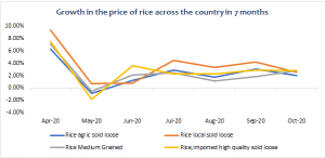 Across the 36 states and the FCT, the prices of rice, whether agric, local, medium grain or imported has been on a steady increase since June 2020. Between then and now, the data according to the National Bureau of Statistics (NBS) for October 2020 showed that the price of agric rice had gone up by 10.10 per cent; local rice, by 15.23 per cent; medium grain, by 8.54 per cent and imported rice was up by 10.54 per cent.