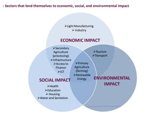The Nigerian economy will gain when more investment is made in sectors that lend themselves to social, economic and environmental impact. According to Dalberg , the economic impact areas are industry and light manufacturing. It includes secondary agriculture, access to finance among others. Social impact areas include health, education, housing as well as water and sanitation. The environmental impact includes tourism and transport.