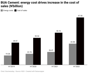 Energy costs and materials were the major drivers of the increase in the cost of sales, as energy costs grew by 64.6 percent to N43.58 billion and materials grew by 48.20 percent to N28.02 billion in the first half of 2022.