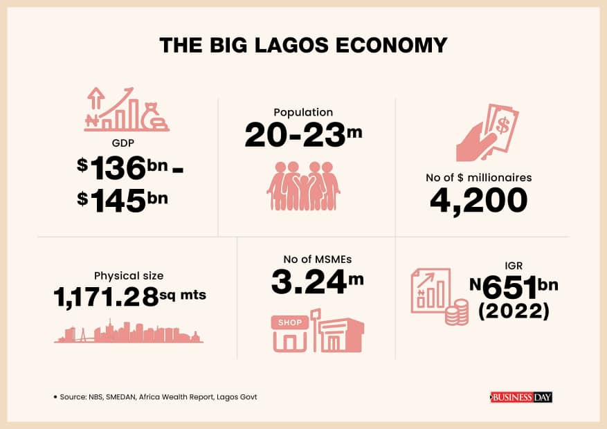 Lagos State’s gross domestic product (GDP) is estimated at $137 billion – $145 billion. Forget whether it is fourth or fifth largest on the continent, pay attention to what that size means: Bigger than Kenya’s $113.4 billion econom, Ghana’s $74 billion GDP, and Ethiopia’s $127 billion economy.