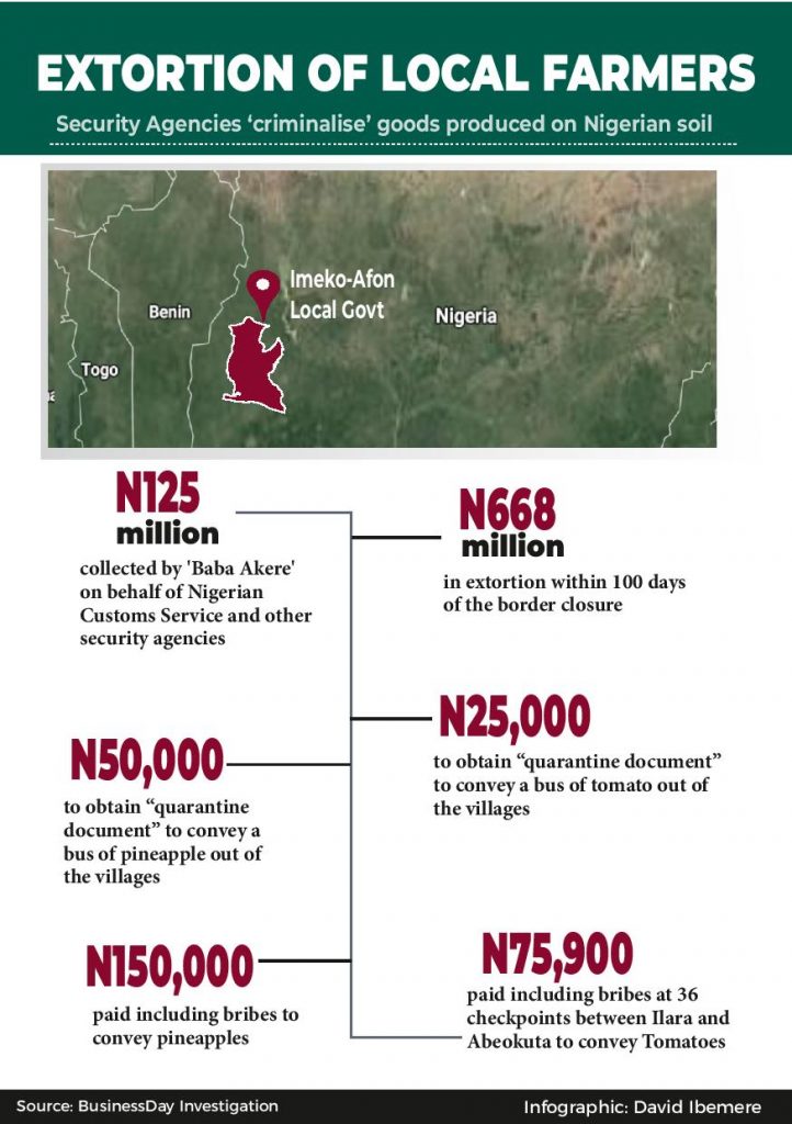 The border was supposedly closed to goods coming from outside Nigeria, but BusinessDay investigations in these border communities of Ogun State have revealed a systemic oppression of farmers and traders in those areas, who are made to pay thousands of naira before they can move their goods to markets in the cities.