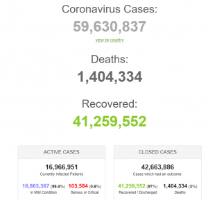 As at November 24 2020, despite the 41.26 million recovered persons of the 59.6 million coronavirus cases that have been recorded so far, more than half a million new cases have been reported worldwide with America taking the bulk of about 30 percent at 169 thousand plus new COVID-19 cases and 1.4 million deaths reported worldwide.