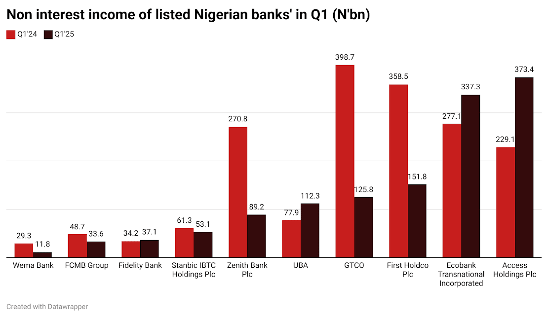 Across six surveyed banks, their non-interest income fell during Q1 as the naira maintains stability.