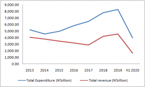 Revenue generated in the first five months of 2020 was N1.6 trillion and expenditure incurred was N3.9 trillion, according to data from the 2021-2023 Medium Term Expenditure Framework (MTEF) and Fiscal Strategy Paper (FSP).