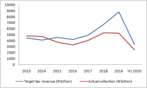 In the first half of 2020, taxes raked in N2.5 trillion as revenue, but this was a shortfall of 27 percent when compared with the target tax revenue for the period of N3.4 trillion.
