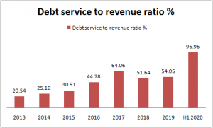 Nonetheless, if the debt service to revenue ratio is higher than the accepted 20 percent threshold, serious interventions are highly required.