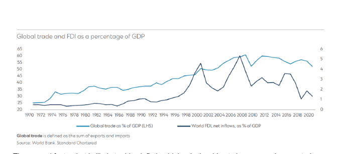 One of the main drivers of ‘lowflation’ was the acceleration of globalisation following the initiation of diplomatic ties between the US and China in the 1970s, the collapse of the Berlin Wall in 1989 and China’s accession to the World Trade Organisation in 2001.
