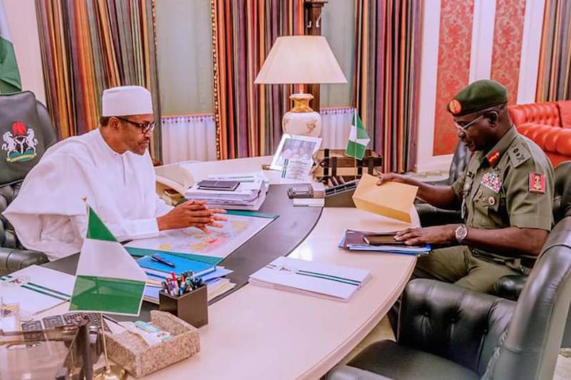 Chief of Army staff, Tukur Buratai, chief of Air Staff, Sadique Abubakar, chief of Naval Staff, Ibok-Ete Ekwe Iba