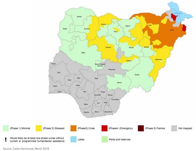 According to FSIN, in 16 states of northern Nigeria and the Federal Capital Territory (FCT) the number of people in Crisis and Emergency decreased by 40 percent between June-August 2017 and 2018 to 5.3 million.