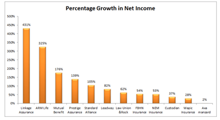 Meanwhile, Linkage Assurance, ARM life, Mutual Benefits, Prestige Assurance and Standard Assurance outperformed peers in income growth for the period.