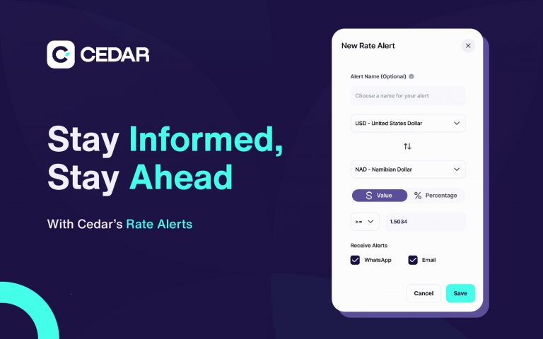 Just imagine: You’re about to make a big-ticket purchase to an overseas supplier. You’ve been keeping a close eye on the exchange rates, but you’re still unsure if you’re getting the best deal. Then, suddenly, your phone buzzes. It’s a Rate Alert from Cedar, letting you know that the exchange rate for your preferred currency pair has hit your target.