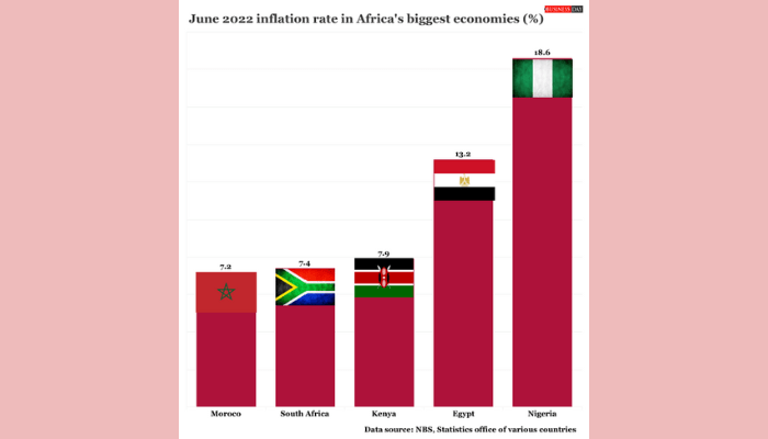 June 2022 inflation rate in Africa’s biggest economies (%)