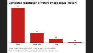 In just three weeks, about 1.2 million youths have been fully registered. The youth registrants make up more than half of the 2 million people who have completed their voter registration during this period.