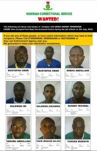 The federal government has released the names and faces of some Boko Haram terrorists who fled the Kuje medium security custodial centre in Abuja, and declared them wanted.