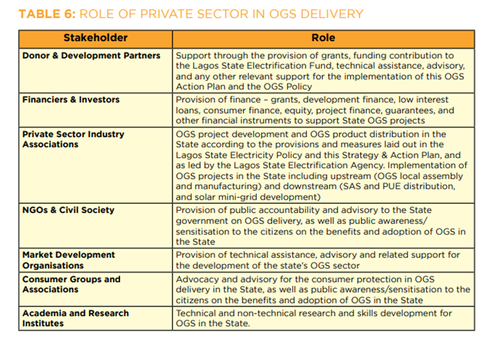 “It will be funded by a mix of public finance, including State Off-Grid Solutions budgetary allocations; private finance from institutional investors; donor and development institutions; multilateral finance institutions, and green and climate finance funds; and any other sources of finance as identified and designated by the state.”