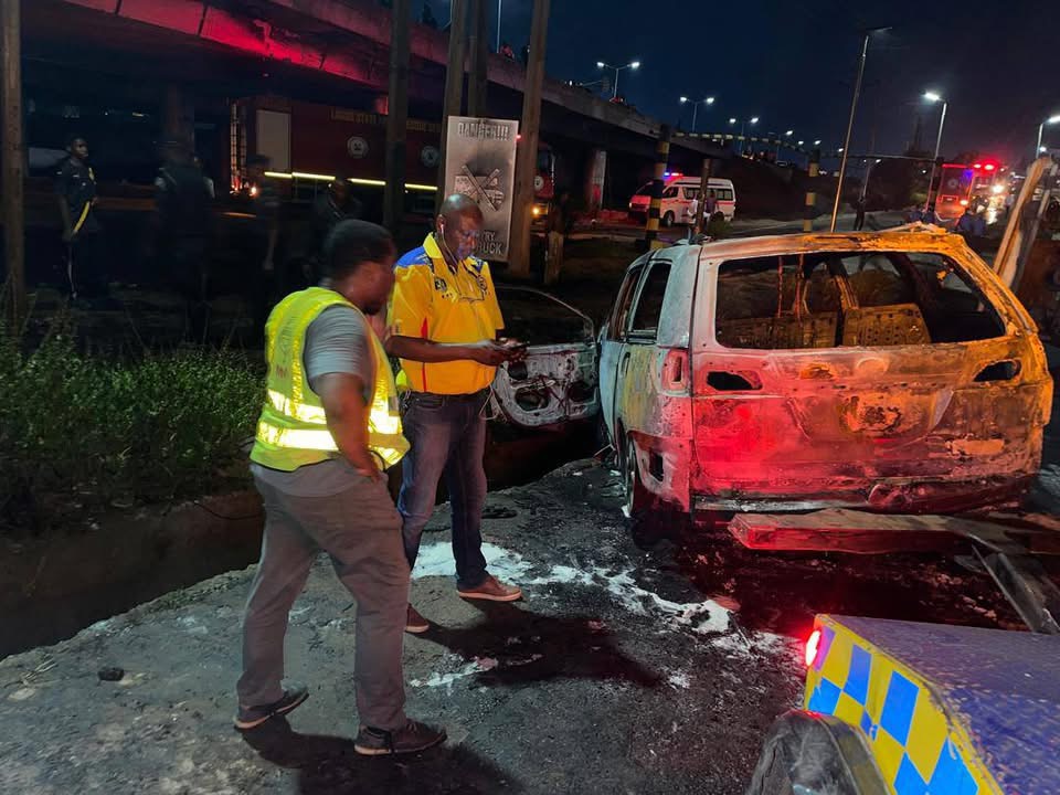 Spokesman for the Lagos State Police Command, CSP Benjamin Hundeyin, confirmed the incident at 10:30 p.m., stating, “The accident was suspected to have occurred when the vehicle was trying to ascend the link road to the Lagos-Ibadan Expressway by Otedola Bridge. Consequently, the vehicle somersaulted, spilled its entire contents on the road, and fire ignited immediately.