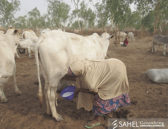 This inability stems from the fact that the Nigerian milk production system is mainly subsistence-oriented and marred by low productivity. According to H.J Makun (2018), the average annual production per cow is 213 liters, which is less than one tenth of the global average. Local milk producers, mostly women, are unorganized and are limited by gendered cultural norms and a lack of agency – it is said that while the milk belongs to the women, the men own the cows. Women are thus largely excluded from decision making that affects their primary business. Other limitations on the cows such as their genetic composition, long distances covered for grazing, inadequate supply of feed and water, combine with poor production practices by dairy farmers, to lead to low production volumes of milk , and women consequently receiving little income from the dairy business.