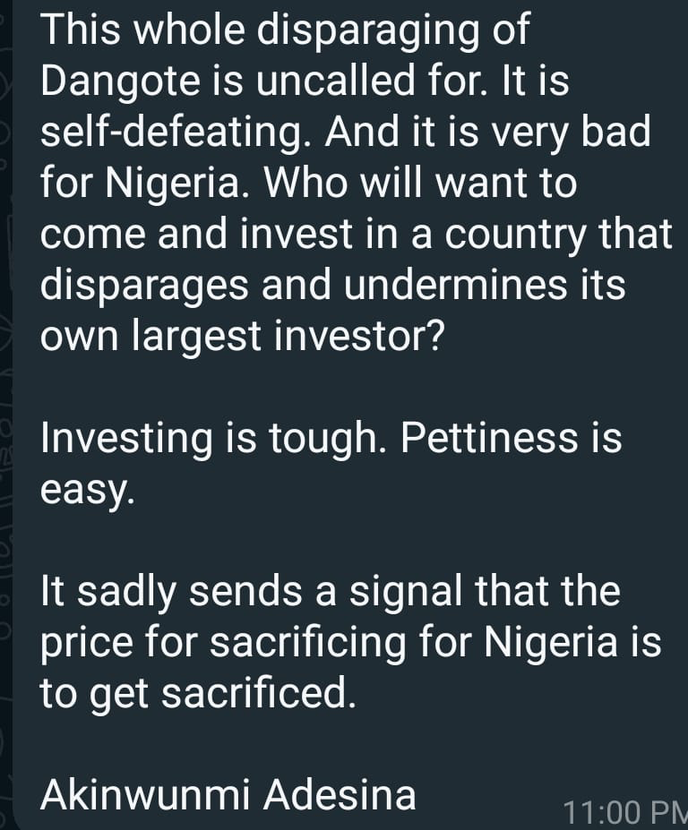 By the way, how much forex did Dangote buy from the CBN at this subsidised rate? How much forex did NNPC take from the Federation account in the same year to run and turn around its dead refineries? What are we benchmarking against?