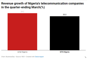 Airtel Nigeria and MTN nigeria recorded an operating profit growth of 20.93 percent and 34.72 percent respectively in the quarter under review.