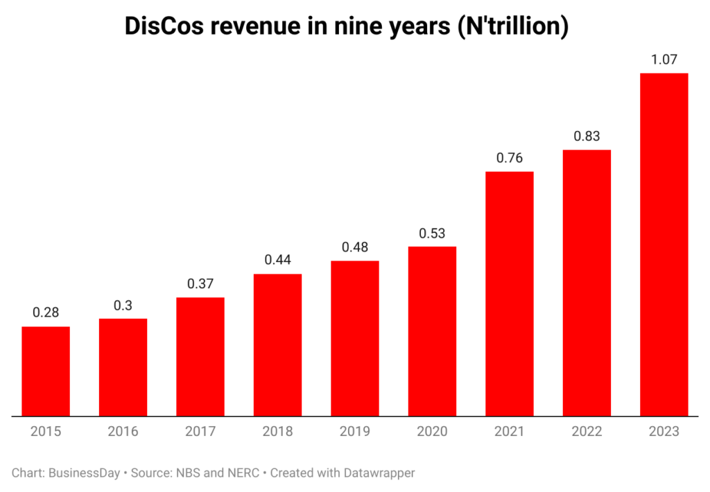 BusinessDay reported that with a revenue of N294.95 billion in the fourth quarter of 2023, the 11 DisCos in Nigeria have amassed a cumulative total of N1.07 trillion for the full year.