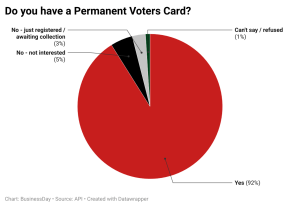 Findings from the API/ BusinessDay poll show that this time, 93 percent of respondents are interested in the coming elections, with 80 percent of the respondents having Permanent Voters Card (PVCs), and 13 percent awaiting PVC collection.