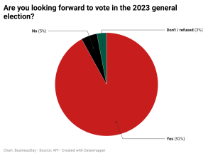 Nigerians’ interest in general elections has reached a record high ahead of the 2023 polls, according to an Africa Polling Institute (API) conducted in partnership with BusinessDay.