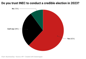 The poll also revealed that 62 percent of respondents trust INEC to conduct a hitch-free election come 2023. Furthermore, 30 percent of respondents identified capacity and competence to revive the economy as the top three qualities Nigerians expect to see from the next president.