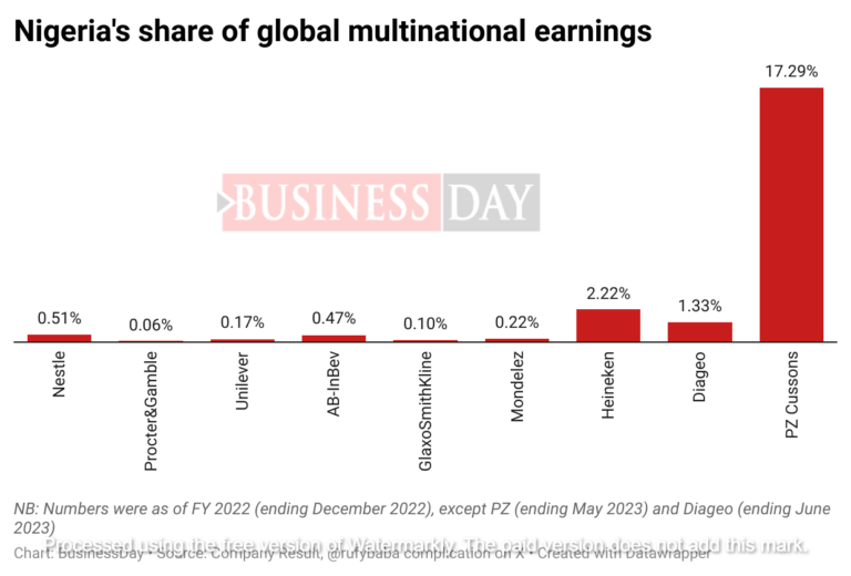 That’s according to data showing Nigeria’s meagre contribution to the total revenues of multinationals operating within the country.