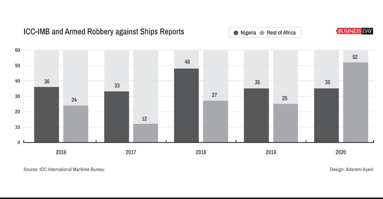The report which was published in December 2020 indicates that armed robbery and piracy attacks in Nigeria doubled between 2016 and 2020 than several countries in Africa including Somalia, Ghana, Mozambique, Congo and the Democratic Republic of Congo (DRC).