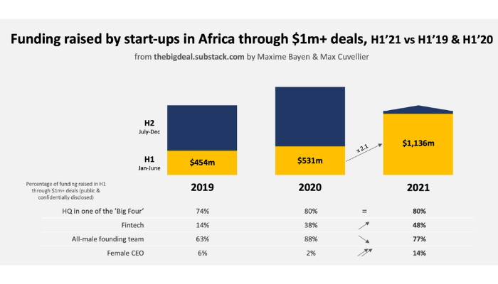 In May, AfricArena, an accelerator projected that VC investment in tech startups in Africa will reach between $2.25 billion and $2.8 billion by the end of 2021. This would beat the peak funding raise in 2019.