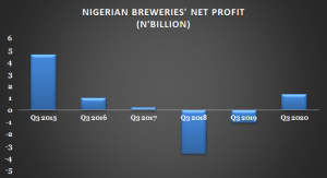 The brewer’s profit after tax rose to N1.35 billion in the third quarter of 2020 compared to a loss of N1.04 billion in the same period last year and N83.9 million in Q2’2020.