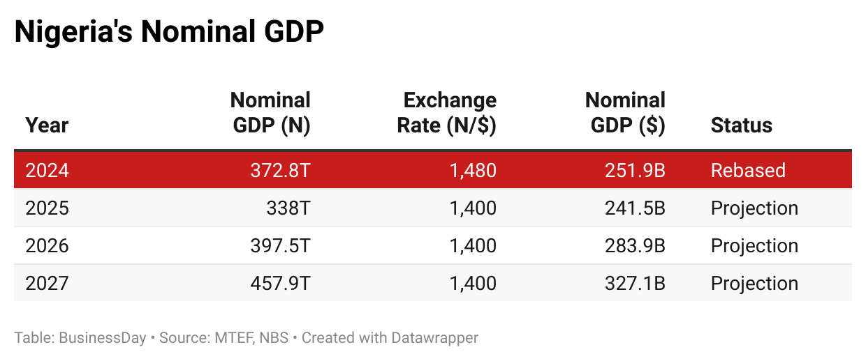 Given the current growth projections in the Medium Term Expenditure Framework (MTEF) for 2025–2027, Nigeria’s economy is expected to hit $327.1 billion by 2027. However, it is important to note that these estimates were prepared before the recent GDP rebasing, meaning the MTEF figures may need to be updated to reflect the revised baseline.