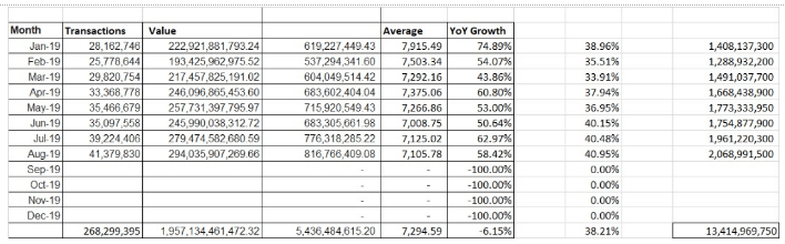 Data from NIBSS showed that total volumes of PoS transactions for 2017 stood at 146.3 million worth N1.4 trillion; 285.9 million transactions in 2018 worth N2.3 trillion; and 187.7 million at N1.4 trillion in the first six months of 2019.