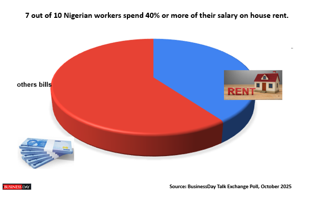 About seven in 10 Nigerian workers spend 40 percent or more of their annual salaries on rents and housing-related matters.