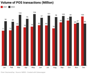 The value of PoS transactions saw a 30 percent increase to N8.3 trillion realised in 2022 from N6.4 trillion in the same period in 2021.
