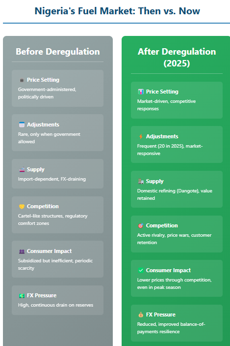 For ordinary Nigerians, these developments are more than technicalities. They represent the early fruits of a long-sought dream: a market where competition, not political convenience or administrative fiat, determines outcomes. The recent series of price cuts in 2025, culminating in Dangote Refinery’s December reduction, provides tangible proof that deregulation can deliver. Households are beginning to feel relief, and businesses experience the ripple effects through reduced transport and production costs. If this trajectory continues into 2026, the country may remember 2025 as the year the fuel market finally started to act like a true market. While imperfections and risks remain, the signal is unmistakable: when competition replaces cartel comfort zones, efficiency rises, innovation is rewarded, and citizens benefit. Deregulation, cautiously managed, is transforming Nigeria’s oil sector from a system of scarcity and political shielding into a dynamic engine of consumer welfare and economic resilience.