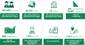 The objective of the Energising Education Programme is to provide 37 federal universities and 7 affiliated university teaching hospitals off-grid, independent power plants, rehabilitate existing distribution infrastructure, to supply them clean and reliable power. The plant is complemented by street lights, renewable energy centers largely funded from green bonds.