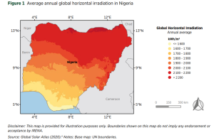 According to the IRENA report, Nigeria has a high solar resource potential, with an average annual global horizontal irradiation ranging between 1 600 and 2 200 kWh/m2, with the highest values (greater than 2000 kWh/m2) located in the country’s northern region.