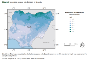 According to the IRENA report, Nigeria has moderate wind potential, with average wind speeds at 10 metres (m) height ranging between 2.1 m/second (s) and 8 m/s, with the highest values (greater than 7 m/s) located in the northern part of the country.