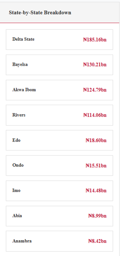 The distribution follows predictable patterns. Delta State leads with ₦185.16bn, followed by Bayelsa (₦130.21bn), Akwa Ibom (₦124.79bn), and Rivers (₦114.06bn). These four Niger Delta states capture nearly 90 percent of all payments, while Edo, Ondo, Imo, Abia, and Anambra share the remainder. For states grappling with mounting debt and limited internal revenue, these sums represent unprecedented fiscal space. Yet history suggests caution. The Niger Delta has received hundreds of billions in derivation payments since 1999, when the 13 percent constitutional provision took effect. The results have been disappointing. Despite this largesse, the region remains trapped in a paradox of wealth and poverty that would be comical if it were not so tragic. Port Harcourt’s soot-blackened skies, Bayelsa’s flood-ravaged communities, and Delta’s crumbling schools tell a story of squandered opportunity that this latest windfall threatens to repeat.
