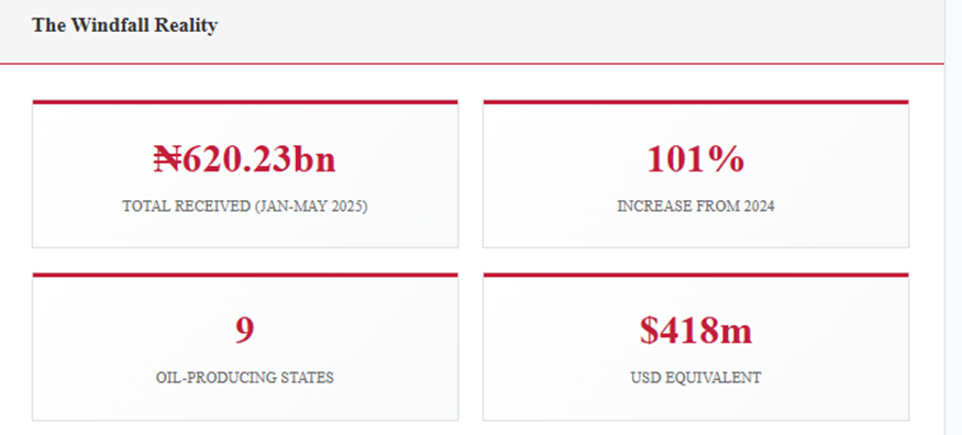 Nigeria’s oil-producing states have received an unexpected gift that could prove either transformative or catastrophic. Between January and May 2025, these nine states collected ₦620.23bn ($418m) in derivation payments—more than double the ₦308.19bn received during the same period last year. The windfall, driven by higher oil prices and improved remittances from the Nigerian National Petroleum Company, represents a 101 percent increase that should be cause for celebration. Instead, it demands urgent introspection.