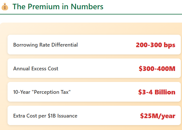 Nigeria’s challenge is not size, but signalling. The country struggles to project a coherent economic narrative. Repeated FX policy reversals, weak fiscal buffers, and political inertia send conflicting signals to global investors. Each policy whiplash leaves a dent in investor confidence. Markets reward clarity, not size—which is why a small but predictable country like Benin gets a better deal. Nigeria’s excess borrowing cost—the premium paid above what fundamentals alone would justify—amounts to approximately $300-400 million annually. Over a decade, this is $3-4 billion.