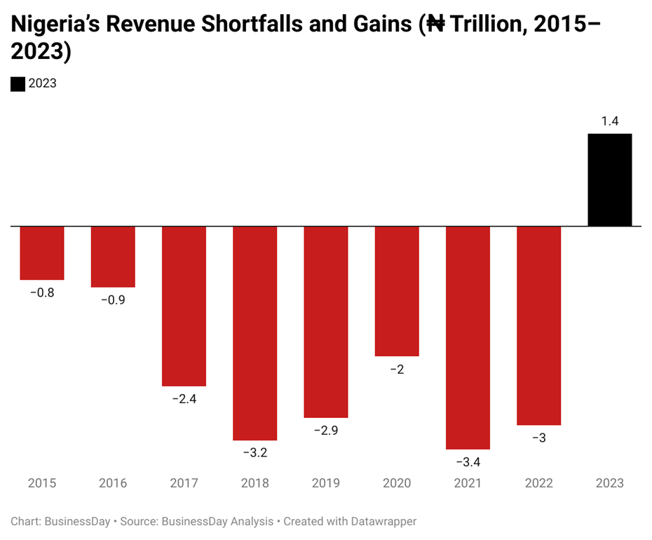 By 2017, the target rose to ₦5.1 trillion, yet actual revenues came in at ₦2.7 trillion—a 47 percent miss.