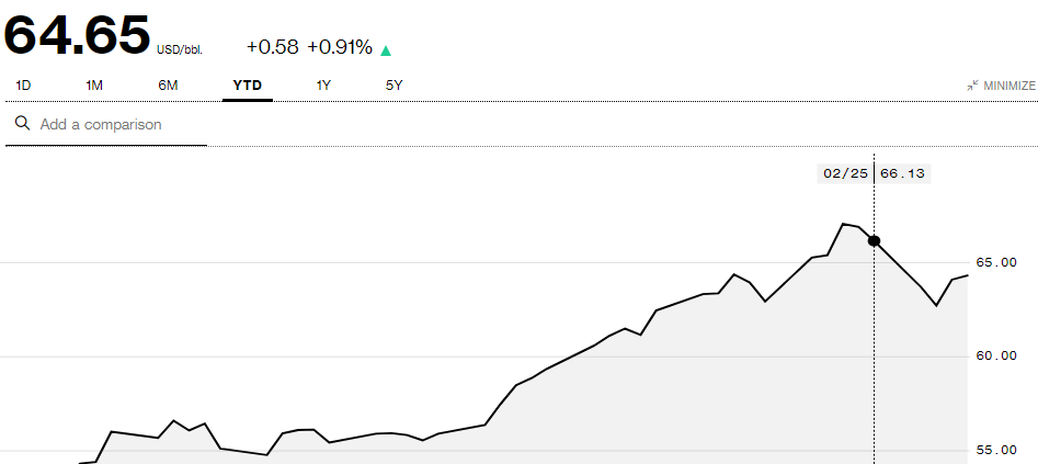 On Thursday morning, Brent futures rose 1.5percent to $64.65 a barrel as at 8 a.m Nigerian time after three consecutive days of losses for the first time since December 2020. The international benchmark has surged more than 20percent this year.