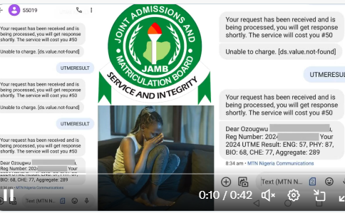 While some candidates are in jubilation for scoring 200+ in the 2024 Unified Tertiary Matriculation Examination (UTME), Ozougwu, a girl identified only by her surname has been weeping sour since getting to know she scored 289.