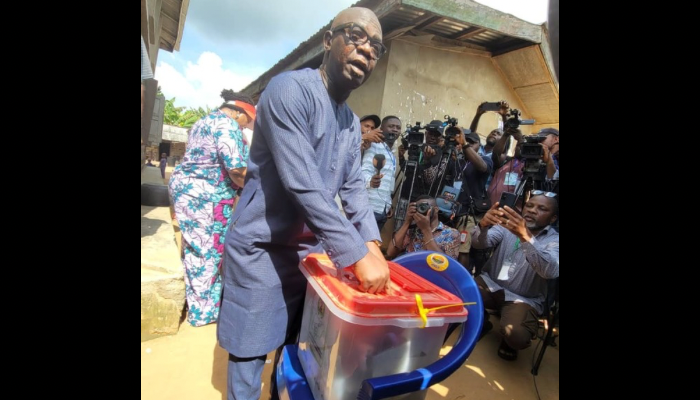 Ajayi casts his vote after a few minutes of battle with the BVAS machine for accreditation.